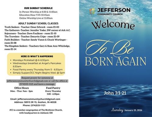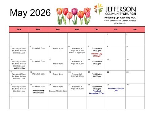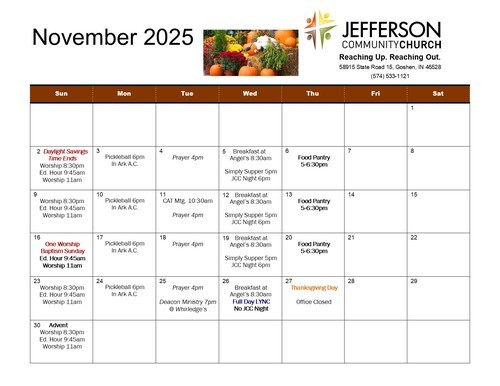 Remember that the JCC Food Pantry is open every Thursday from 5-6:30 pm to serve the people of Jefferson Township.