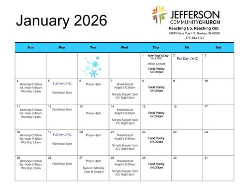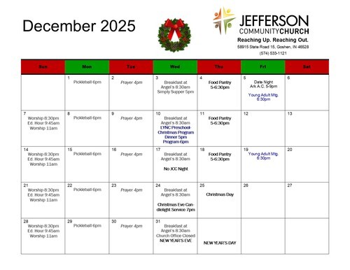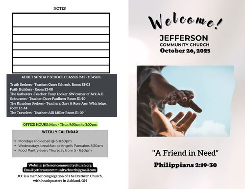 JCC’s Helping Hands Ministry works year-round to help our neighbors during times when they need assistance paying bills. If God has touched your heart with a desire to help others, just include a note marked “Helping Hands” with your offering and indicate the amount you’d like to give to the fund. This is an ongoing ministry, and your support is appreciated any time of year. Thank you for blessing others!