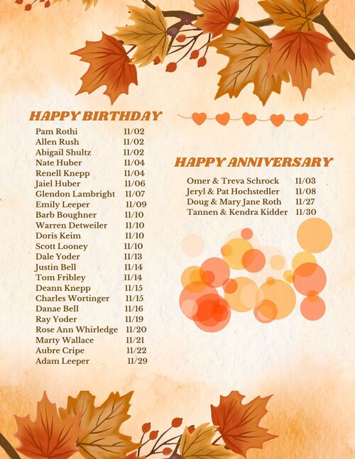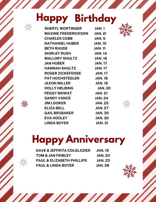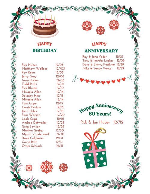 Help us celebrate birthdays and anniversaries of our brothers and sisters in Christ!