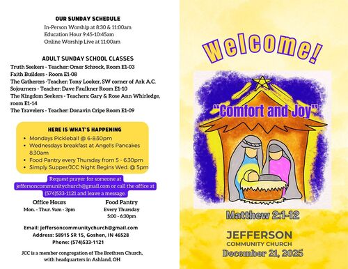 It’s a wise person who makes joy a priority in their lives. It’s a part of the Christmas story, but it should be a part of our story too! Our world is filled with fear. Let’s be reminded and challenged today, to embrace the source of all joy in Jesus and especially his birth! Join us today in Matthew 2:1-12 as we focus on “Comfort & Joy!”